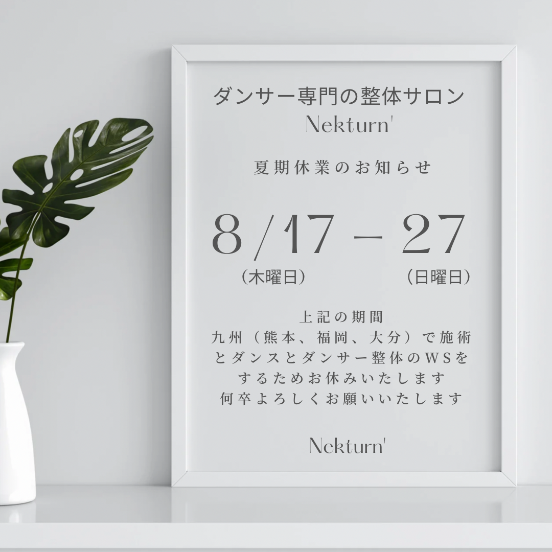 九州(熊本、福岡、大分)で施術とダンスとダンサー整体のWSをするためお休みいたします