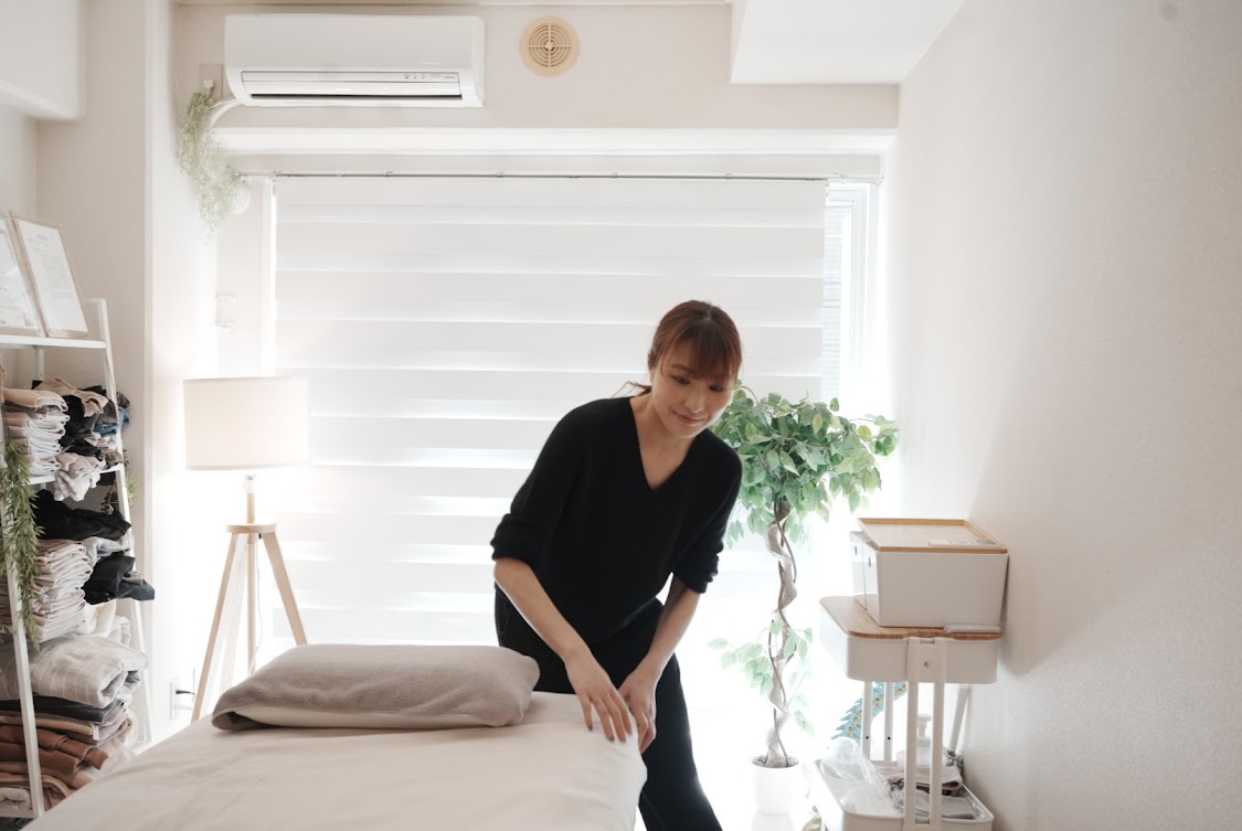 朝、出勤したら、空気を入れ替え、施術ベッドを整え、