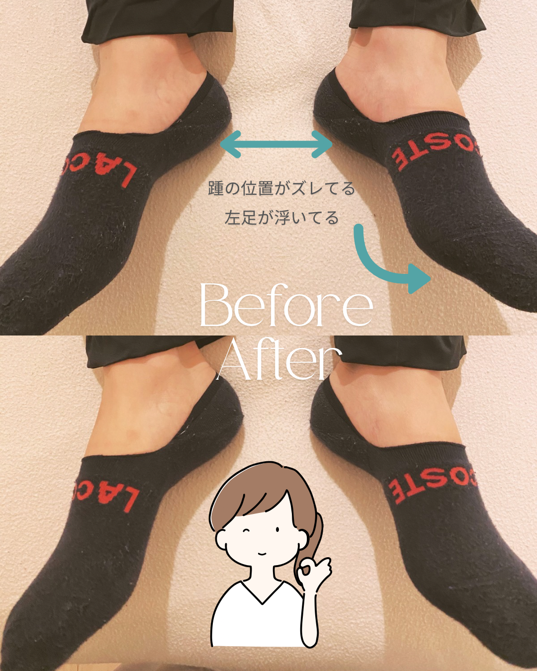 自覚症状は肩こりでしたが、足の歪みや太もものハリ、骨盤のズレ。